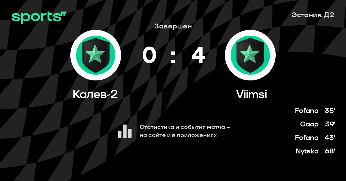Калев-2 – Viimsi: Калев-2 забивает в 5 из 6 последних матчей против этого соперника