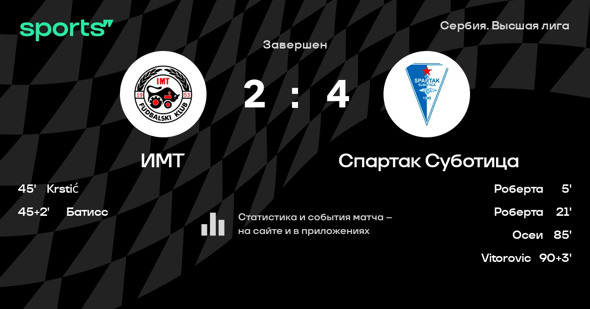ИМТ – Спартак Суботица: Спартак Суботица забивает в 6 последних матчах против этого соперника