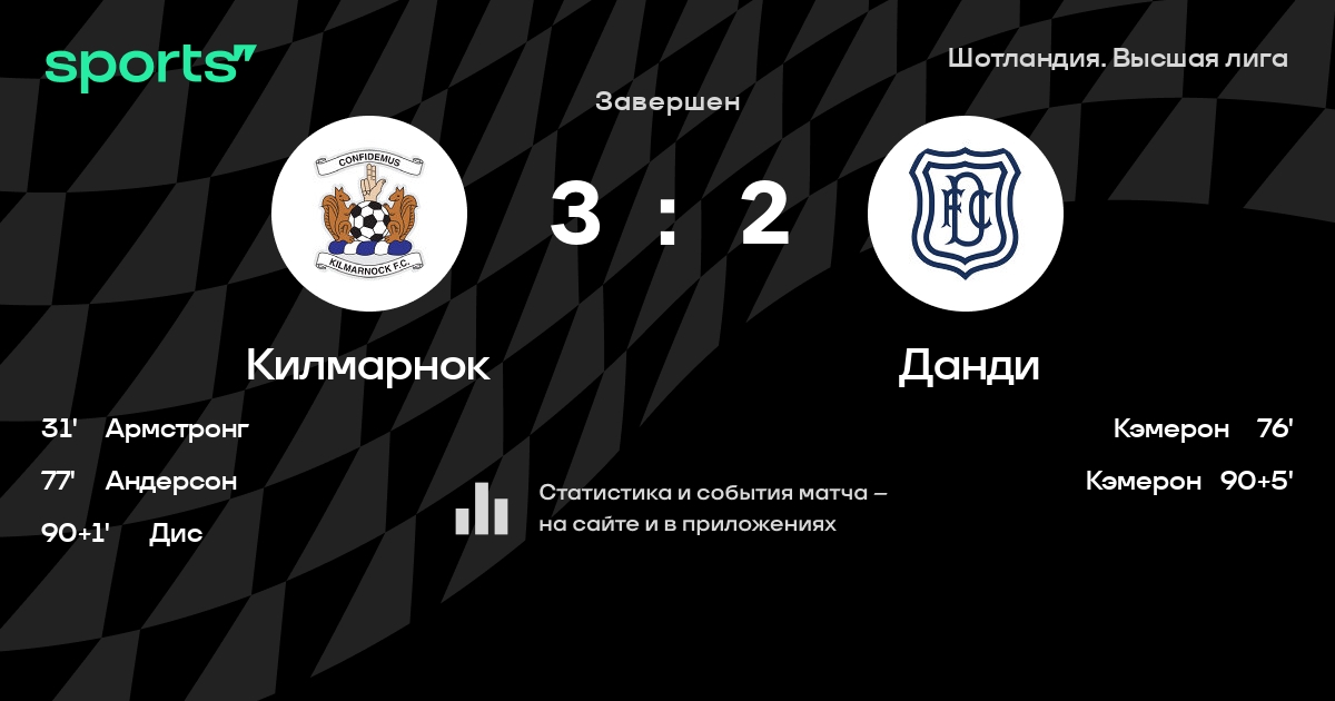 Килмарнок – Данди: Данди не проигрывает в 7 из 9 последних матчей против этого соперника в турнире «Премьершип»