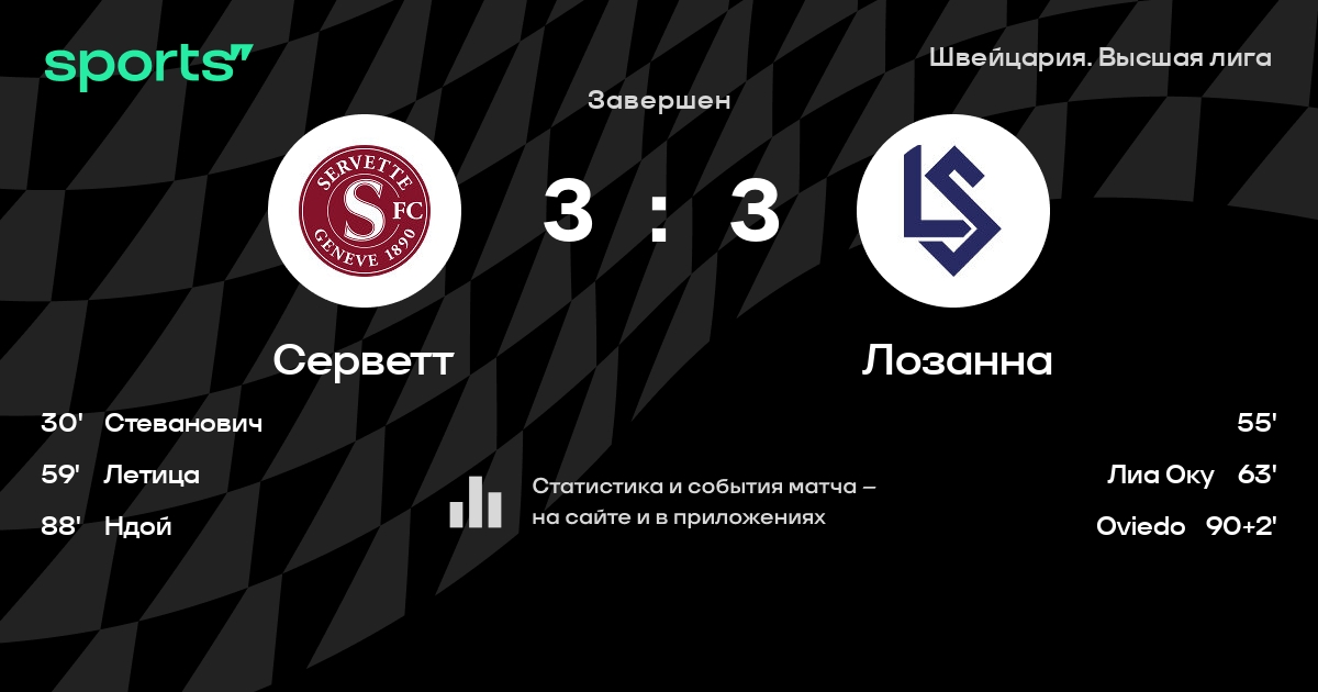 Серветт – Лозанна: Серветт не проигрывает в 5 из 7 последних матчей против этого соперника