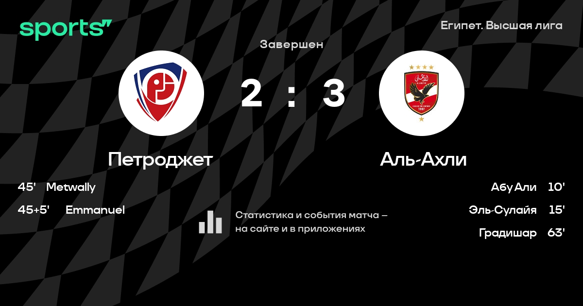 Петроджет – Аль-Ахли: Аль-Ахли побеждает в 7 последних очных матчах