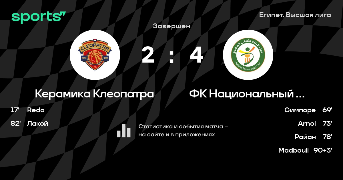 Серамика Клеопатра – ФК Национальный банк Египта: Серамика Клеопатра побеждает в 4 последних очных матчах