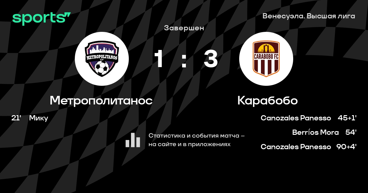 Метрополитанос – Карабобо: Метрополитанос не проигрывает в 8 из 10 последних матчей против этого соперника