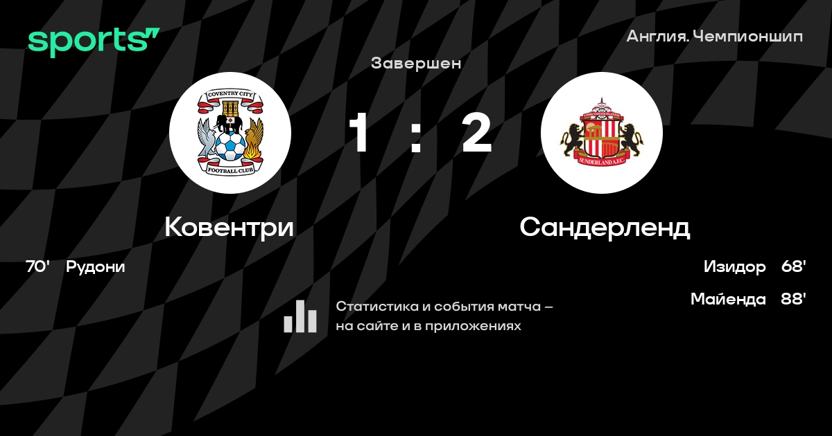 Ковентри – Сандерленд: Ковентри не проигрывает в 10 последних матчах против этого соперника
