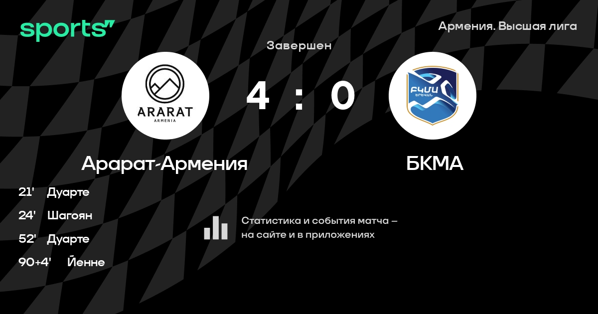 Кучер - Буэно, Кейруш - Акопян, Амбарцумян, Оганесян, Арутюнян - Дуарте, Шагоян, Оканси, НубиссиЗапасные: Manasyan, Авагян, Григорян, Ромерсио, Павловец, Тера, Обиеро, Мурадян, Gbomadu, Алавердян, Йенне