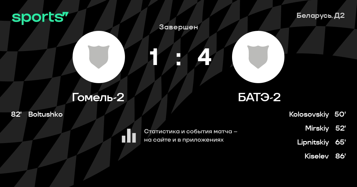 В последних 5 играх БАТЭ-2 забивает в среднем 3.40 гола за игру