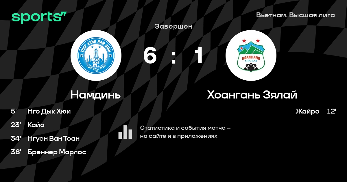 Намдинь – Хоангань Зялай: Намдинь не проигрывает в 5 из 7 последних матчей против этого соперника