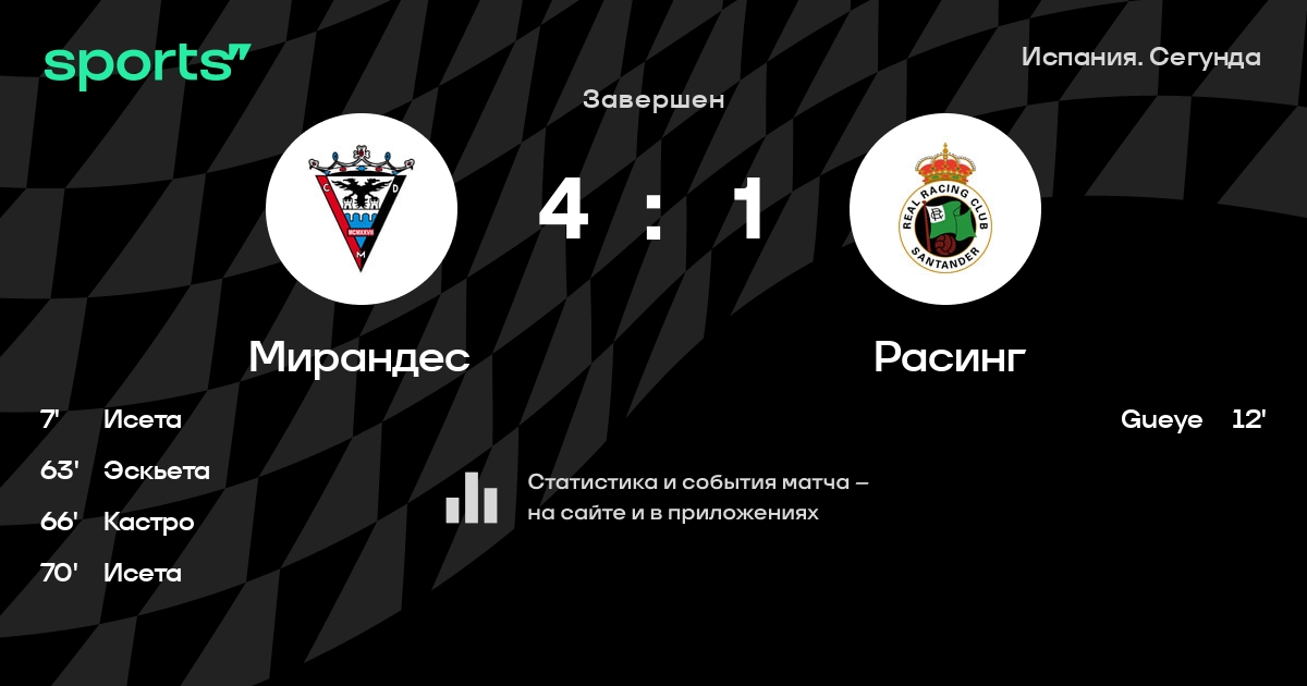 Мирандес – Расинг: Расинг не проигрывает в 6 из 8 последних матчей против этого соперника в гостях