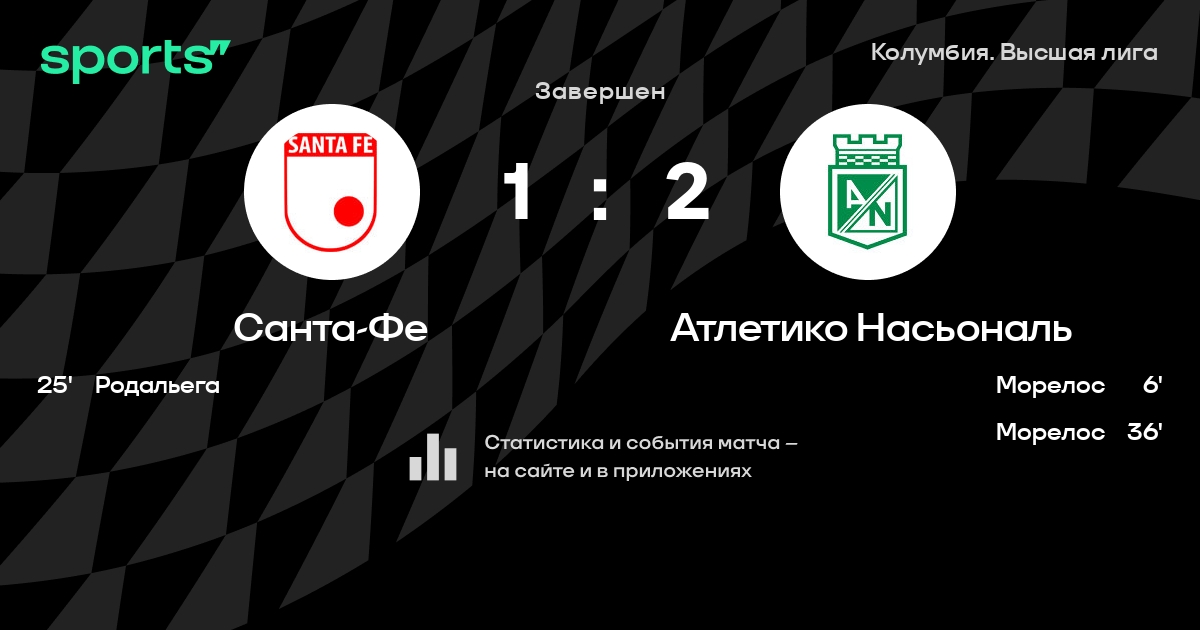 Санта-Фе – Атлетико Насьональ: Атлетико Насьональ не проигрывает в 10 из 12 последних матчей против этого соперника