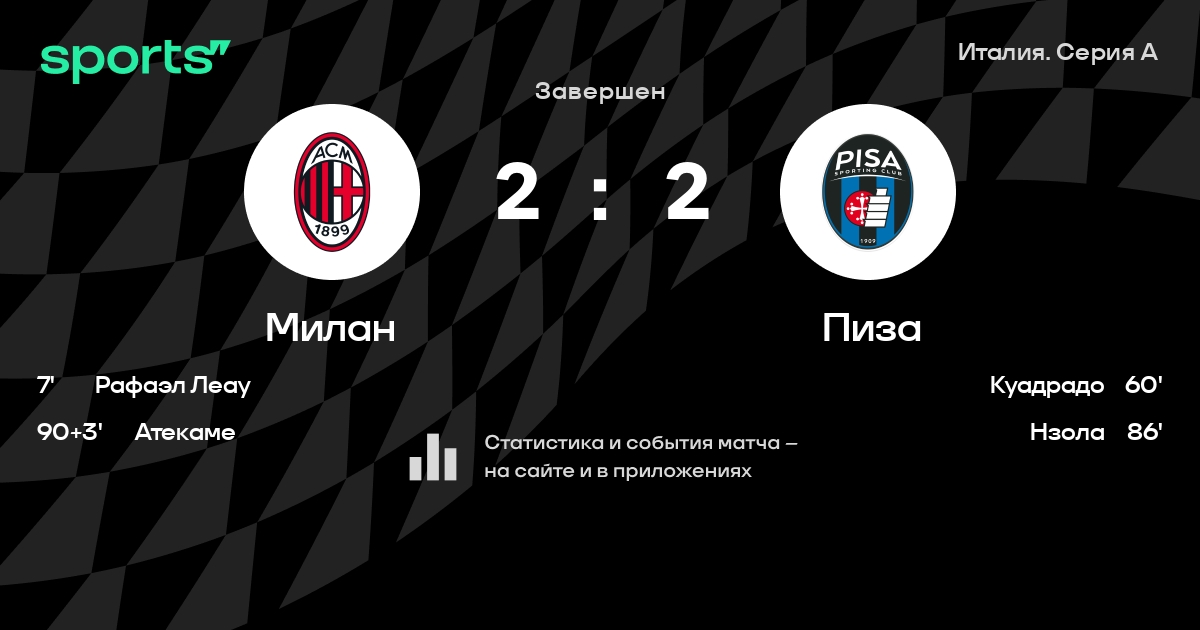 Милан – Пиза: коэффициенты