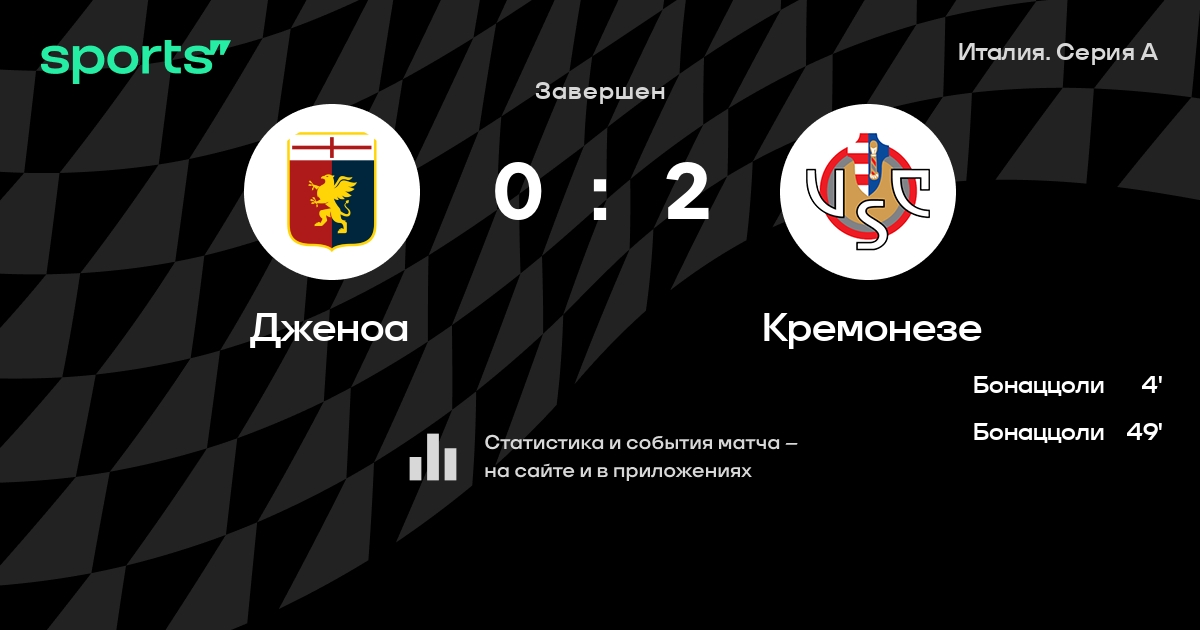 Серия А: шансы Дженоа и Кремонезе на победу в матче 9-го тура чемпионата Италии
