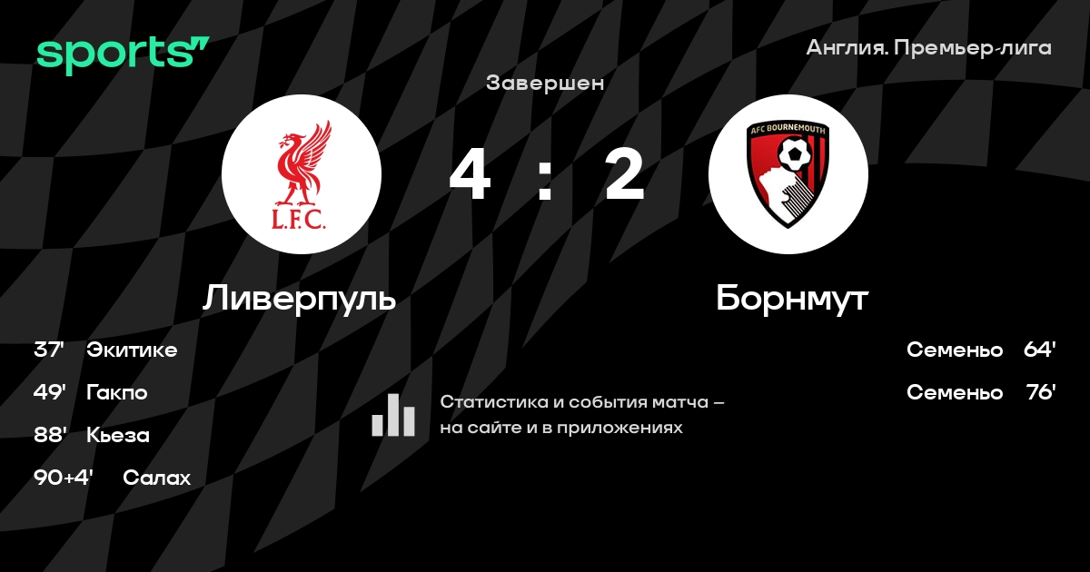 АПЛ: шансы «Ливерпуля» и «Борнмута» на победу в матче 1 тура