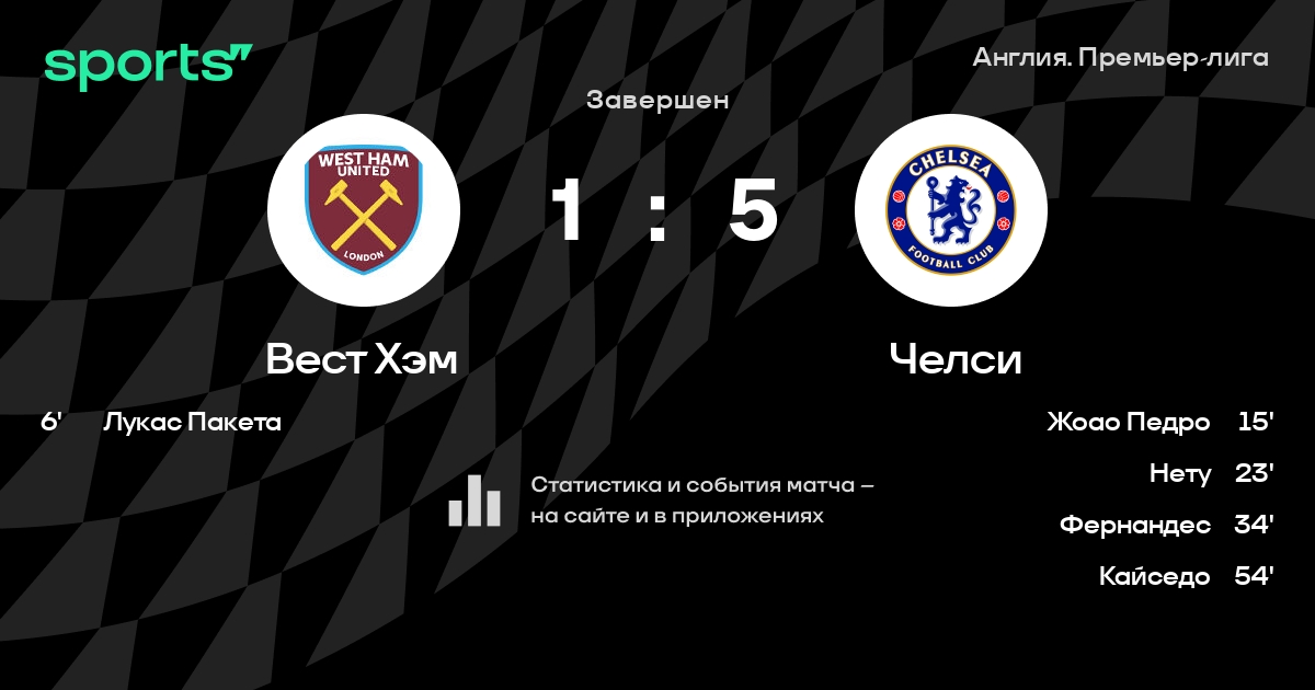 АПЛ: шансы «Вест Хэм Юнайтед» и «Челси» на победу в матче 2 тура