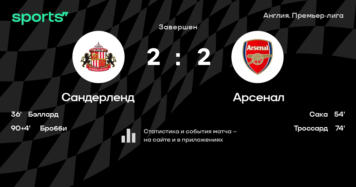 Результат прошлой игры в турнире «Премьер-лига Англия (АПЛ)»: Сандерленд – Эвертон 1:1. После 10 туров Сандерленд набирает 18 очков и занимает 4 место в турнире. Лучший бомбардир команды – Вильзон Изидор: он забил 4 в 11 матчах. Сандерленд не проигрывает в 3 последних матчах в рамках турнира «Премьер-лига Англия (АПЛ)». Арсенал имеет в активе больше всех побед в турнире – 8. В 3 последних матчах в турнире «Премьер-лига Англия (АПЛ)» Сандерленд обязательно забивает. В последних 5 играх Сандерленд забивает 6 голов. В последних 5 играх Сандерленд пропускает 4 голов.