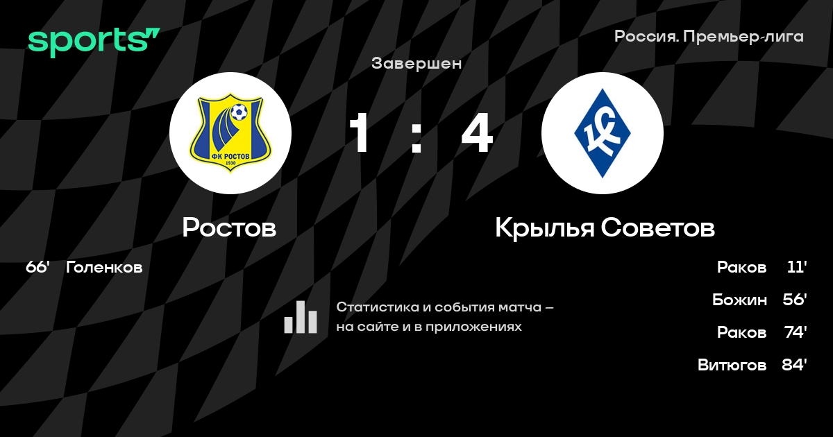 Ростов – Крылья Советов: Крылья Советов забивает в 5 из 7 последних матчей против этого соперника