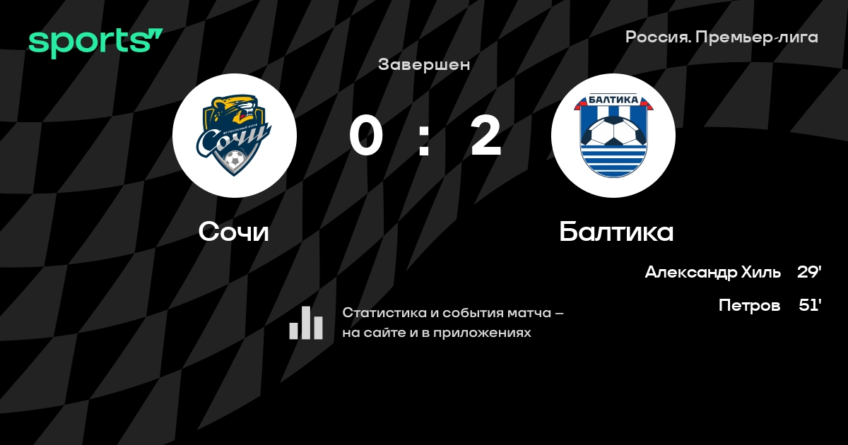 Сочи – Балтика: Балтика забивает в 4 последних матчах против этого соперника