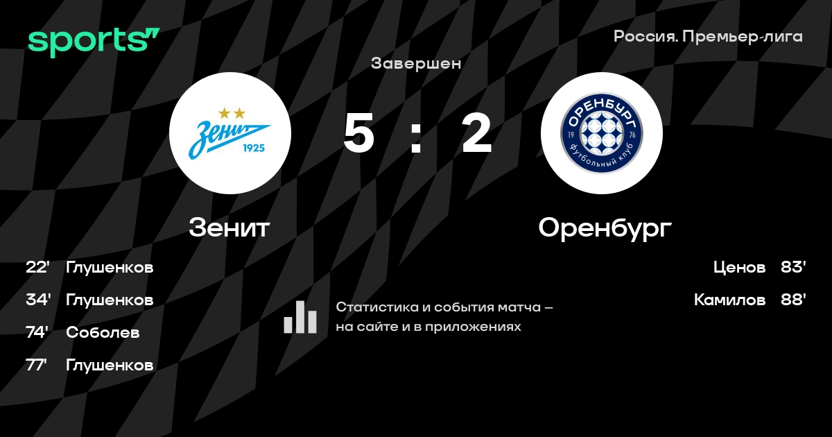 Зенит – Оренбург: Зенит побеждает в 4 последних очных матчах