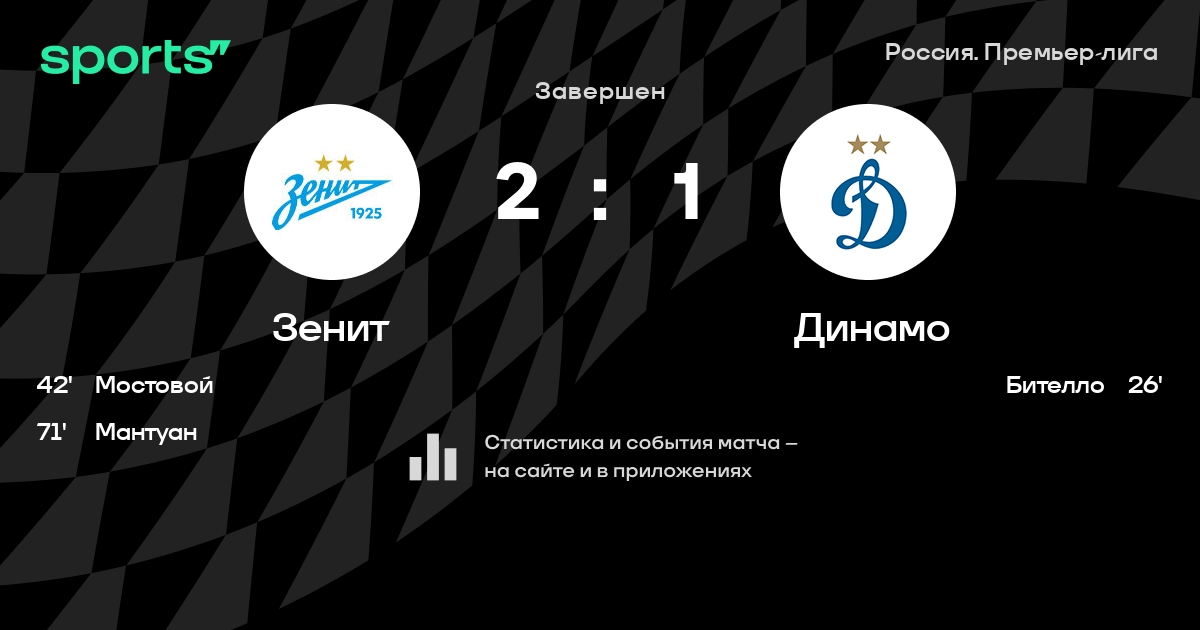 Зенит – Динамо: Зенит не проигрывает в 12 из 13 последних матчей против этого соперника дома в турнире «Премьер-лига Россия (РПЛ)»