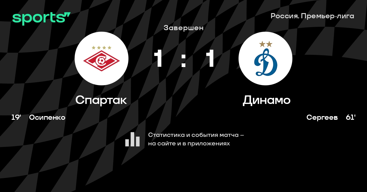 Спартак – Динамо: Динамо забивает в 3 последних матчах против этого соперника