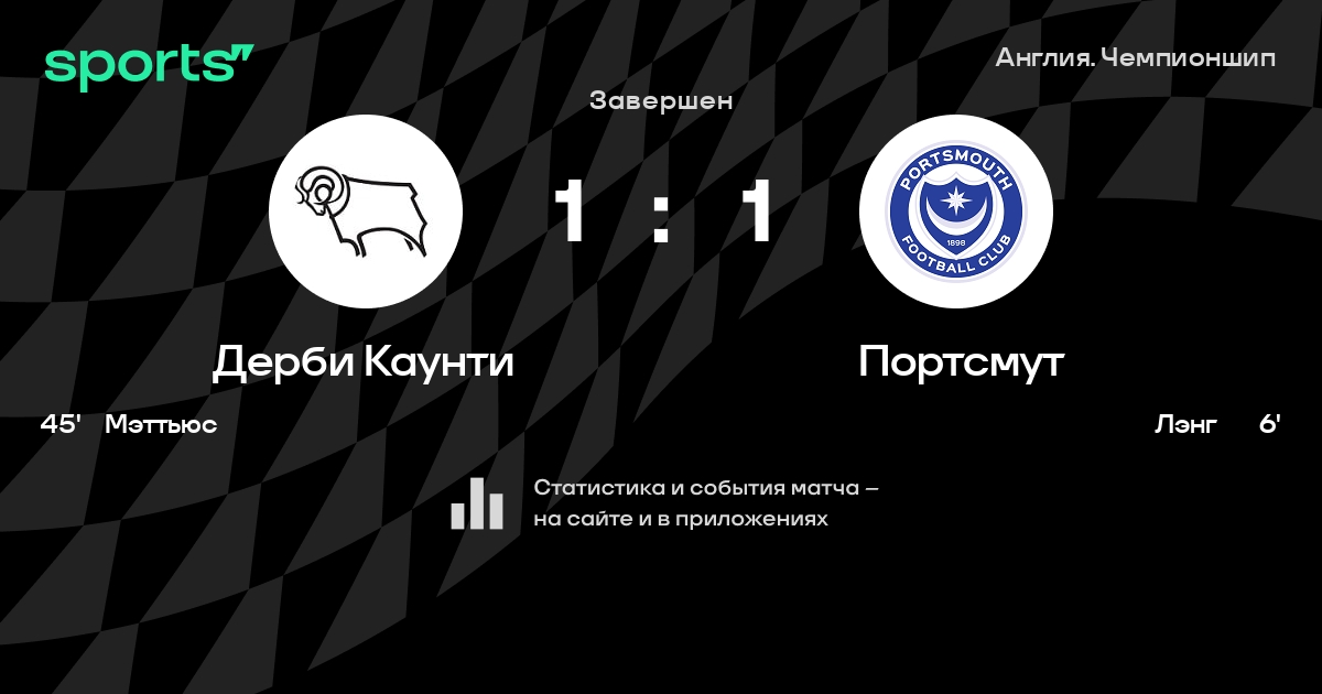 Дерби Каунти - Портсмут: составы на матч