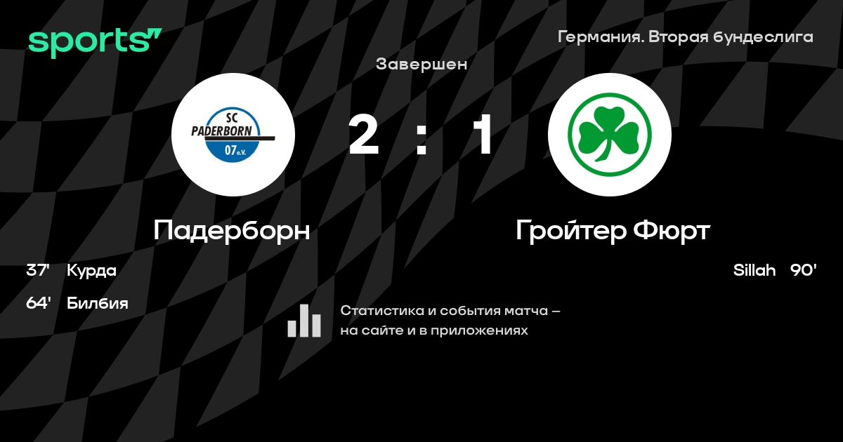 Результат прошлой игры в турнире «Вторая Бундеслига»: Динамо Дрезден – Падерборн 1:2. После 10 туров Падерборн набирает 23 очков и занимает 3 место в турнире. Лучший бомбардир команды – Филип Билбия: он забил 8 в 12 матчах. Падерборн побеждает в 6 последних матчах в рамках турнира «Вторая Бундеслига». В 6 последних матчах в турнире «Вторая Бундеслига» Падерборн обязательно забивает. Падерборн пропускает в 3 последних матчах в турнире «Вторая Бундеслига». В последних 5 играх Падерборн забивает 12 голов. В последних 5 играх Падерборн пропускает 9 голов.