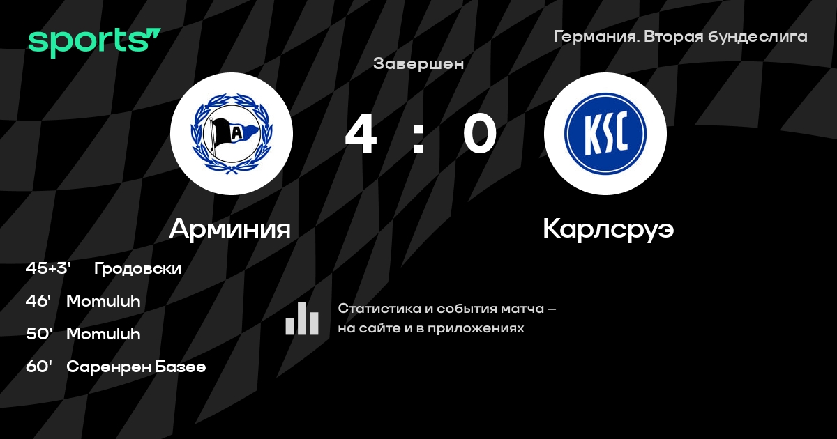 | 6 | Карлсруэ | 12 | 6 | 3 | 3 | 19 | 18 | +1 | 21 | ||