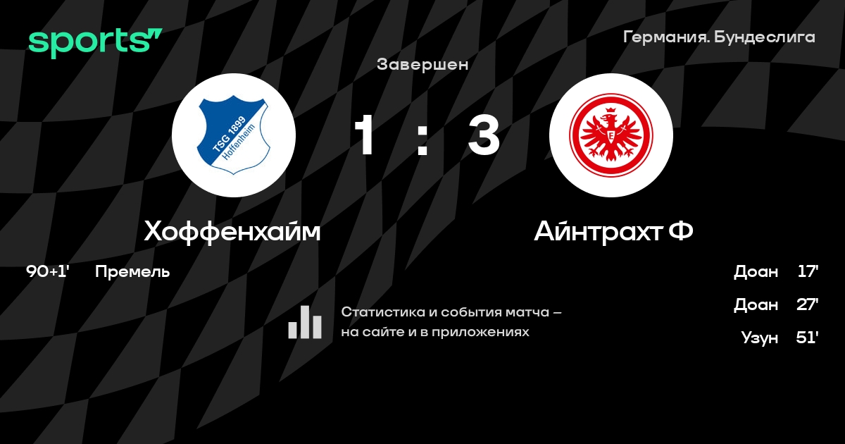 Хоффенхайм – Айнтрахт Ф: Айнтрахт Ф забивает в 16 последних матчах против этого соперника