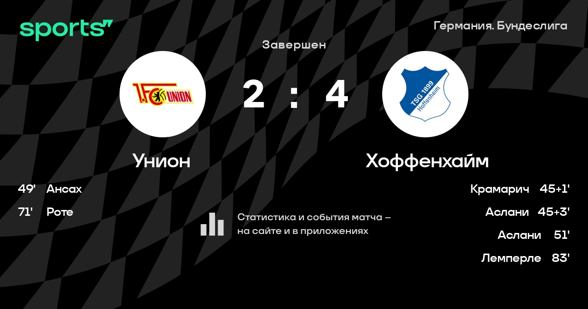 Трансляция Унион Берлин - Хоффенхайм