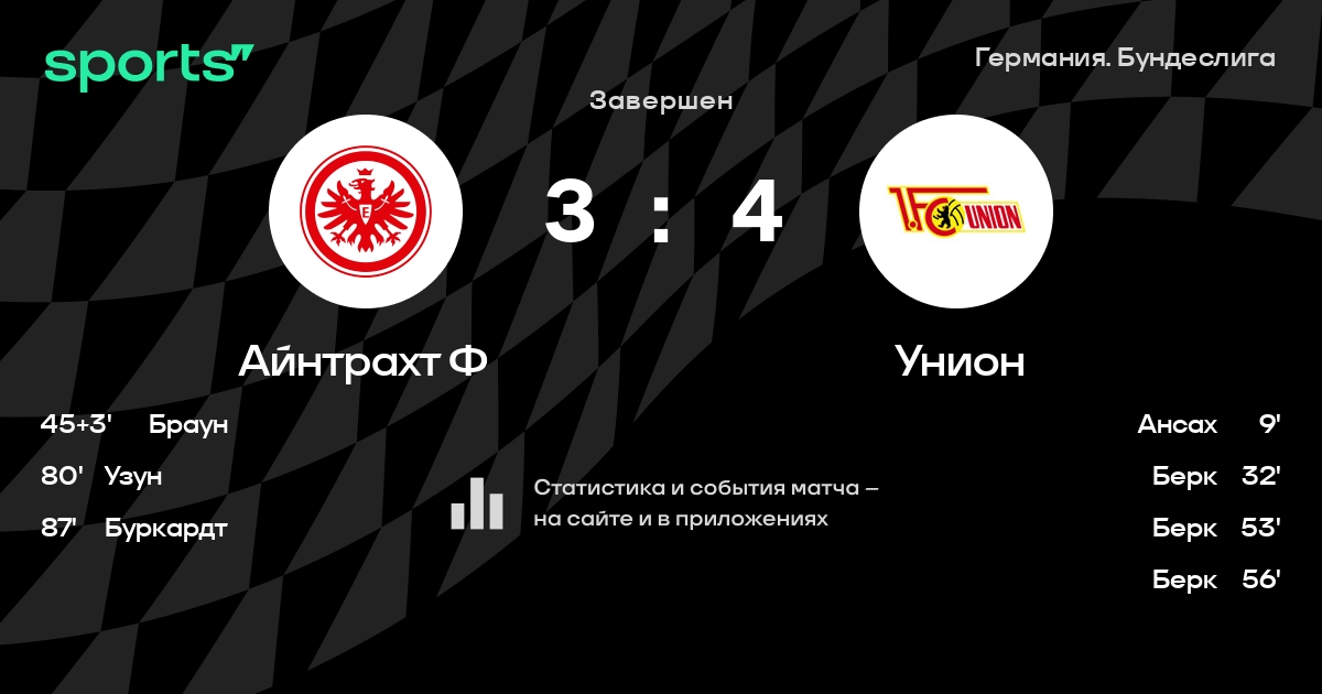 Айнтрахт Франкфурт – Унион Берлин – прогноз на матч 21 сентября 2025 года