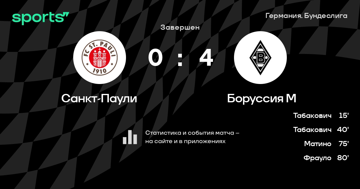 Санкт-Паули – Боруссия М: Санкт-Паули не проигрывает в 5 из 7 последних матчей против этого соперника в турнире «Бундеслига Германия»