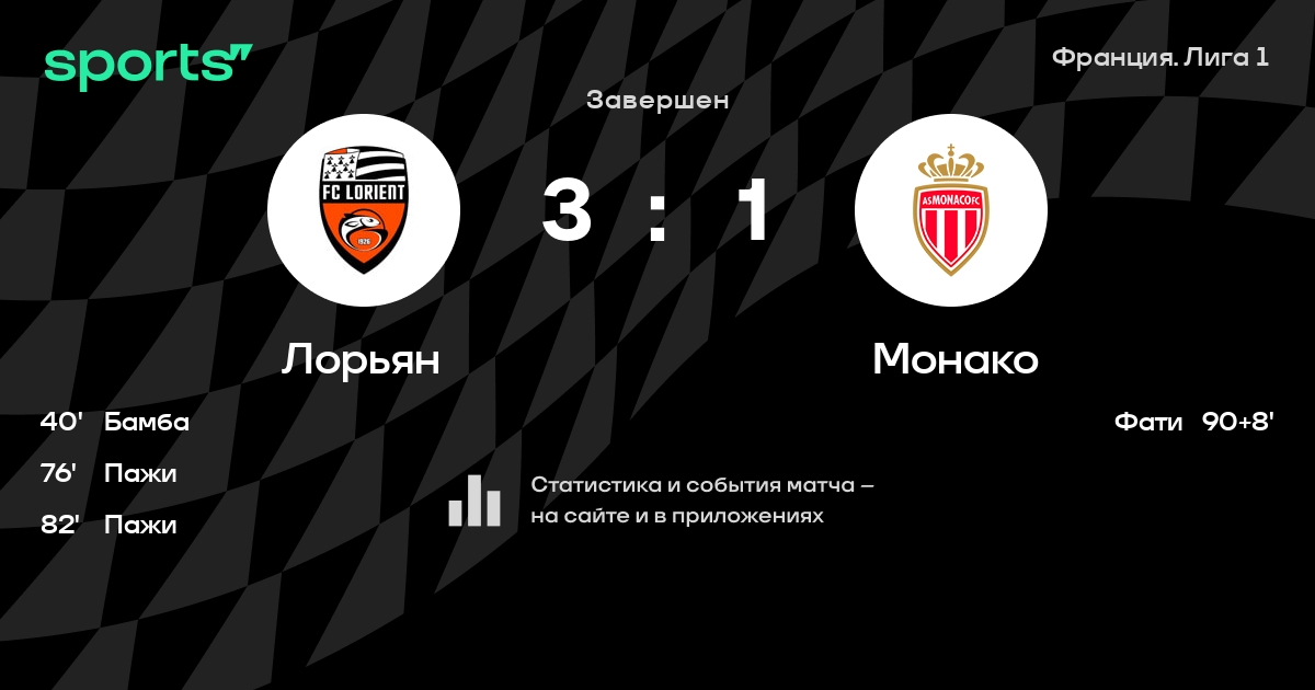 Лига 1: шансы «Лорьяна» и «Монако» на победу в матче 6 тура
