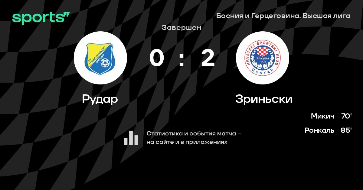 Рудар – Зриньски: Зриньски не пропускает в 4 последних матчах против этого соперника