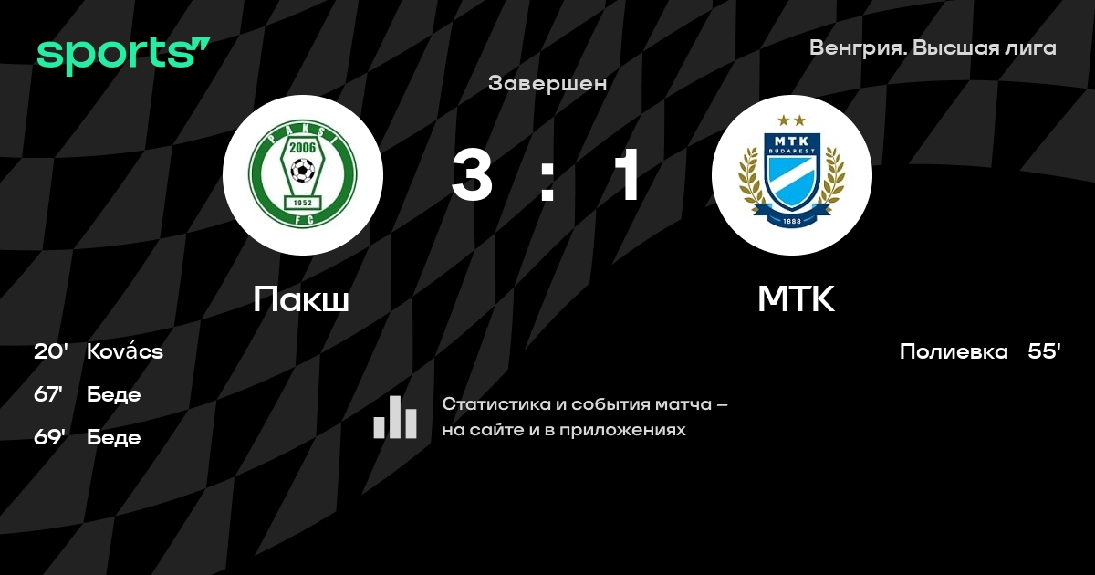 | 4 | Пакш | 16 | 7 | 6 | 3 | 35 | 25 | +10 | 27 | ||