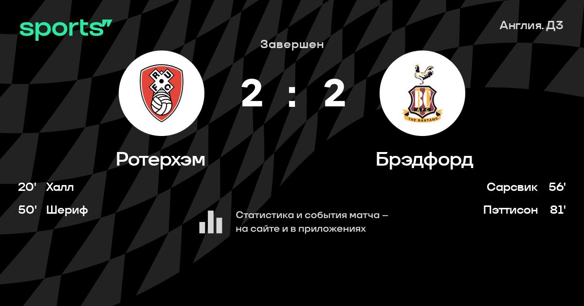 Результат прошлой игры в турнире «Лига 1»: Мэнсфилд – Ротерхэм 2:1. После 9 туров Ротерхэм набирает 7 очков и занимает 23 место в турнире. Лучший бомбардир команды – Джордан Хьюджилл: он забил 2 в 12 матчах. Ротерхэм проигрывает в 3 последних матчах в рамках турнира «Лига 1». Ротерхэм пропускает в 3 последних матчах в турнире «Лига 1». В последних 5 играх Ротерхэм забивает 3 голов. В последних 5 играх Ротерхэм пропускает 6 голов.