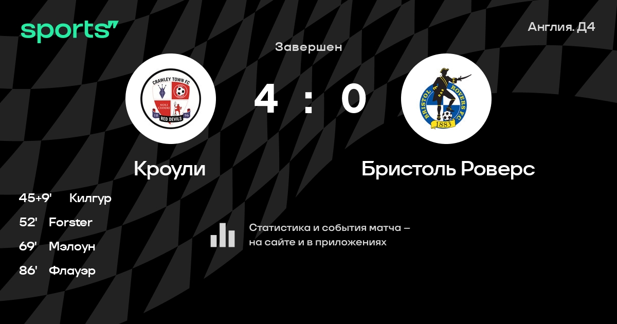 Результат прошлой игры в турнире «Лига 2»: Шрусбери – Кроули 1:0. После 13 туров Кроули набирает 9 очков и занимает 23 место в турнире. Лучший бомбардир команды – Харри Маккерди: он забил 4 в 14 матчах. Кроули не может выиграть в 5 последних матчах в рамках турнира «Лига 2». Кроули пропускает в 5 последних матчах в турнире «Лига 2». В последних 5 играх Кроули забивает 4 голов. В последних 5 играх Кроули пропускает 9 голов.