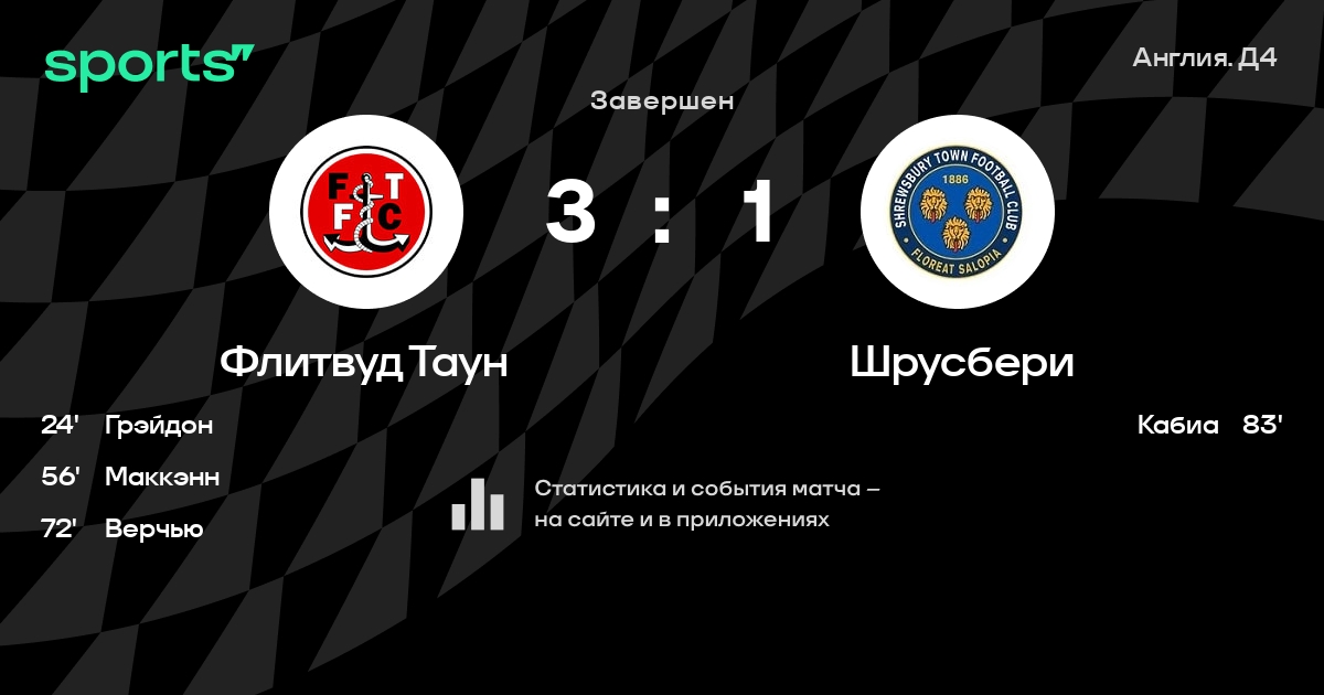 Результат прошлой игры в турнире «Лига 2»: Флитвуд Таун – Суиндон 1:1. После 16 туров Флитвуд Таун набирает 23 очков и занимает 13 место в турнире. Лучший бомбардир команды – W. Davies: он забил 6 в 19 матчах. В 5 последних матчах в турнире «Лига 2» Флитвуд Таун обязательно забивает. Флитвуд Таун пропускает в 10 последних матчах в турнире «Лига 2». В последних 5 играх Флитвуд Таун забивает 9 голов. В последних 5 играх Флитвуд Таун пропускает 8 голов.