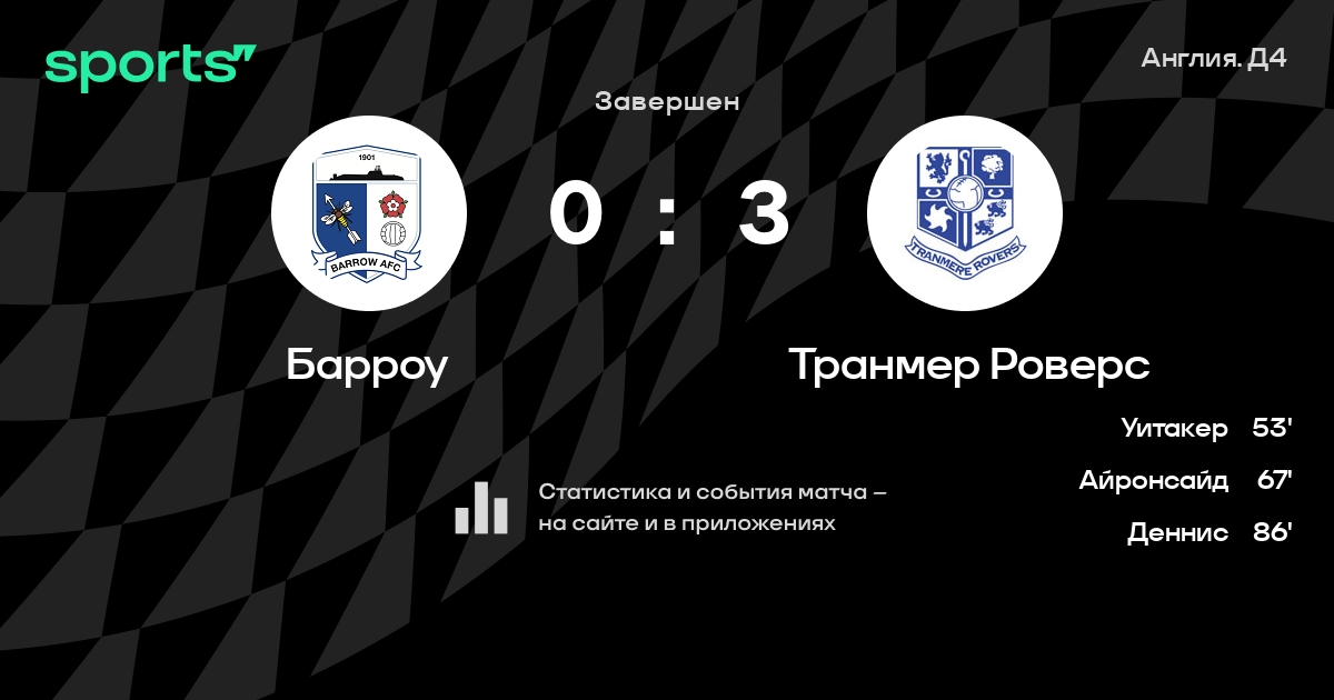 Барроу – Транмер Роверс: Транмер Роверс не проигрывает в 6 из 8 последних матчей против этого соперника в гостях