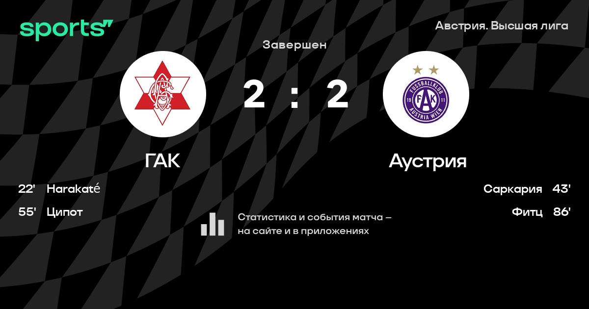 ГАК – Аустрия: Аустрия забивает в 6 последних матчах против этого соперника