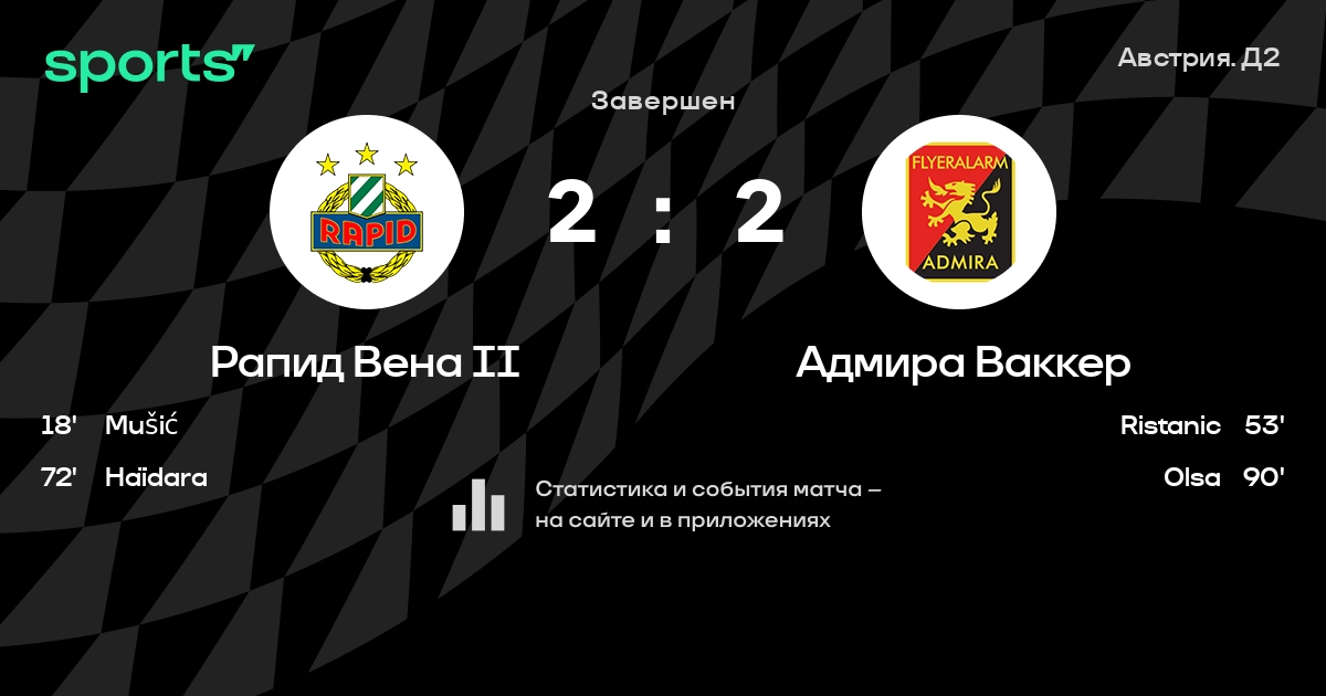Рапид Вена II – Адмира Ваккер: коэффициенты