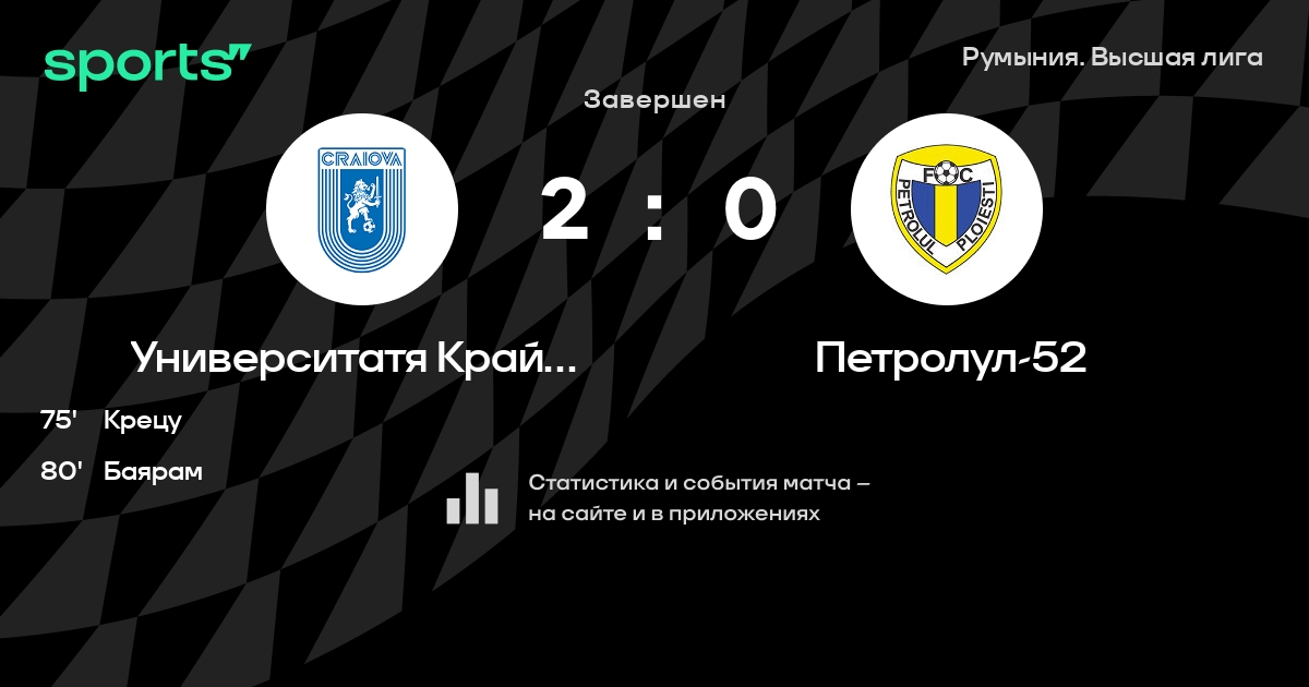 Университатя Крайова – Петролул-52: Университатя Крайова забивает в 6 из 7 последних матчей против этого соперника