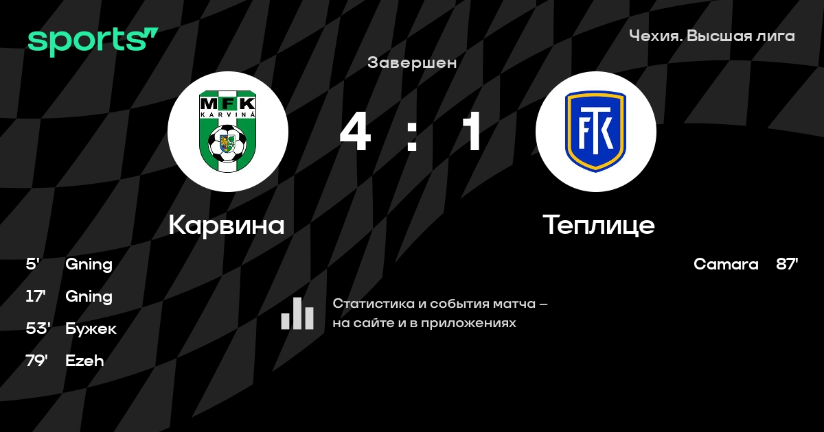 Карвина – Теплице: Карвина не проигрывает в 7 из 9 последних матчей против этого соперника дома