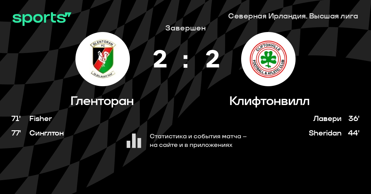 | 4 | Гленторан | 17 | 9 | 4 | 4 | 24 | 17 | +7 | 31 | ||