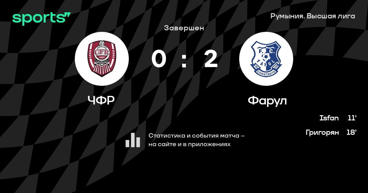 Результат прошлой игры в турнире «Лига 1»: Петролул-52 – ЧФР 1:0. После 13 туров ЧФР набирает 13 очков и занимает 11 место в турнире. Лучший бомбардир команды – Меритон Кореница: он забил 4 в 19 матчах. ЧФР пропускает в 16 последних матчах в турнире «Лига 1». В последних 5 играх ЧФР забивает 7 голов. В последних 5 играх ЧФР пропускает 7 голов.