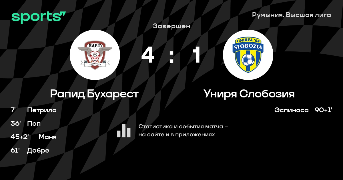 Рапид Бухарест – Униря Слобозия: Униря Слобозия забивает в 3 последних матчах против этого соперника
