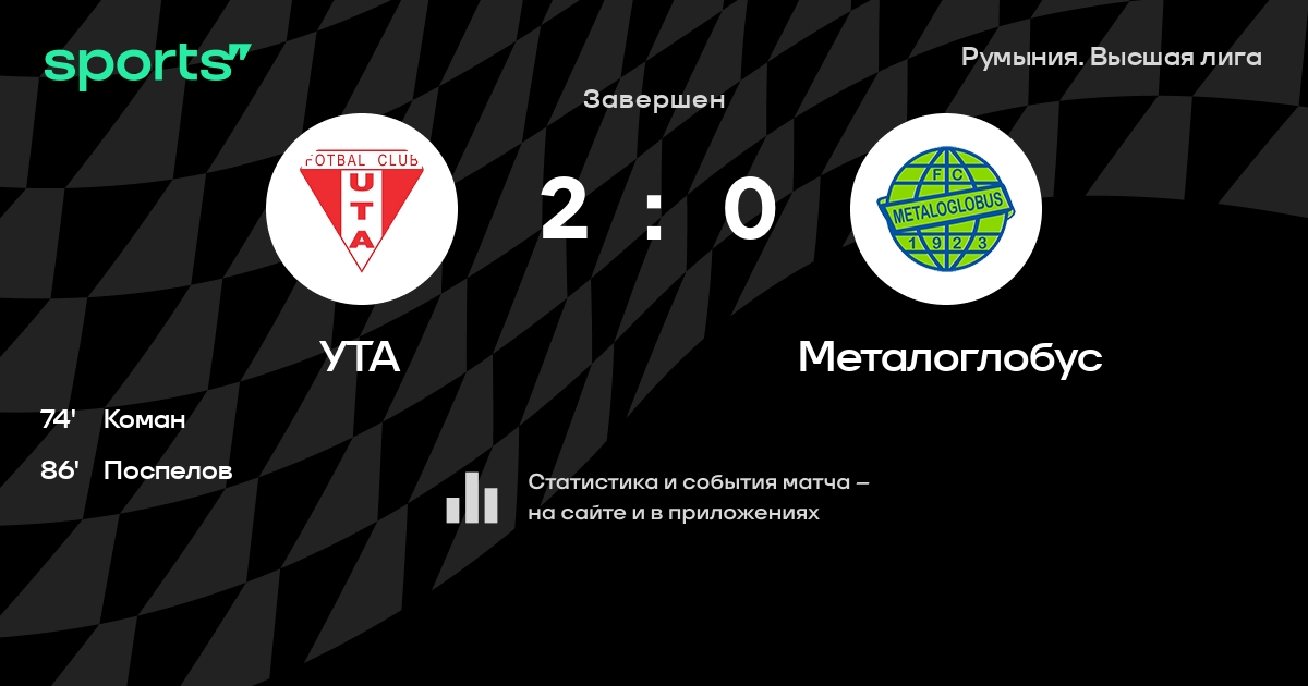 Результат прошлой игры в турнире «Лига 1»: ФКСБ – УТА 4:0. После 14 туров УТА набирает 16 очков и занимает 11 место в турнире. Лучший бомбардир команды – Ионуц Костаке: он забил 6 в 16 матчах. УТА проигрывает в 3 последних матчах в рамках турнира «Лига 1». УТА пропускает в 3 последних матчах в турнире «Лига 1». В последних 5 играх УТА забивает 2 голов. В последних 5 играх УТА пропускает 11 голов.