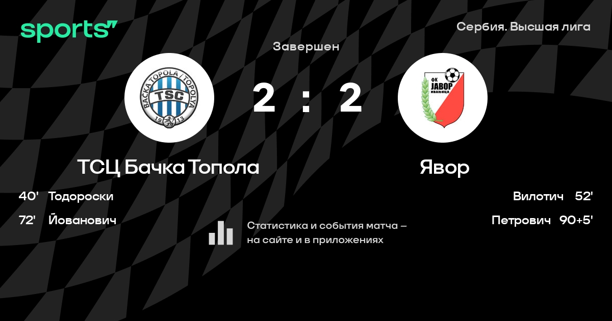 ТСЦ Бачка Топола – Явор: ТСЦ Бачка Топола забивает в 3 последних матчах против этого соперника