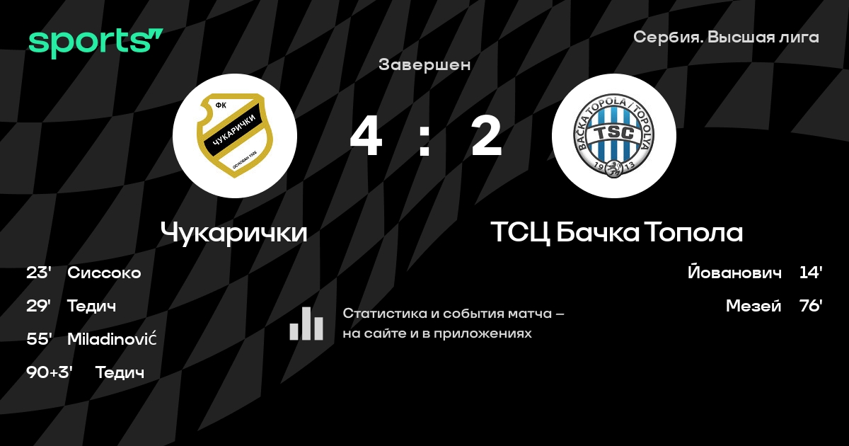 Чукарички – ТСЦ Бачка Топола: ТСЦ Бачка Топола забивает в 3 последних матчах против этого соперника