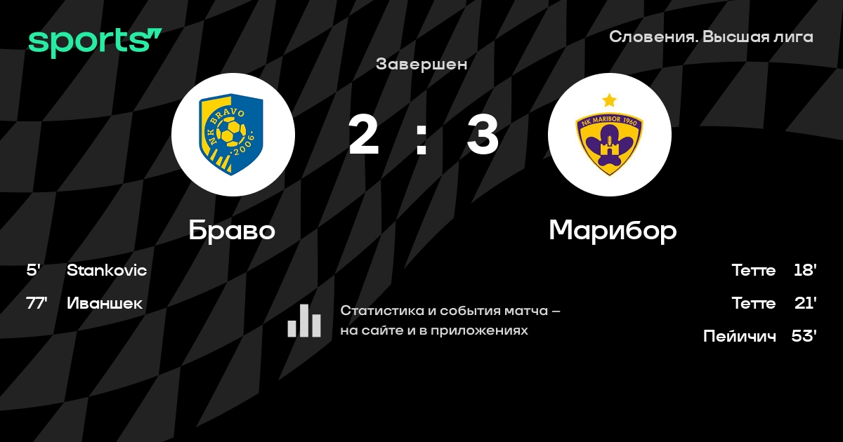 Браво – Марибор: Браво не проигрывает в 5 из 7 последних матчей против этого соперника