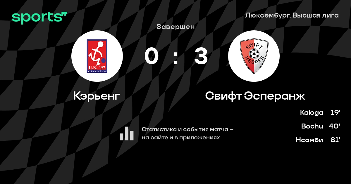 Результат прошлой игры в турнире «Высшая лига»: Мондорф-ле-Бен – Кэрьенг 2:0. После 3 туров Кэрьенг набирает 1 очков и занимает 15 место в турнире. Лучший бомбардир команды – B. Maison: он забил 2 в 2 матчах. Кэрьенг не может выиграть в 3 последних матчах в рамках турнира «Высшая лига». Кэрьенг пропускает в 3 последних матчах в турнире «Высшая лига». В последних 5 играх Кэрьенг забивает 9 голов. В последних 5 играх Кэрьенг пропускает 7 голов.