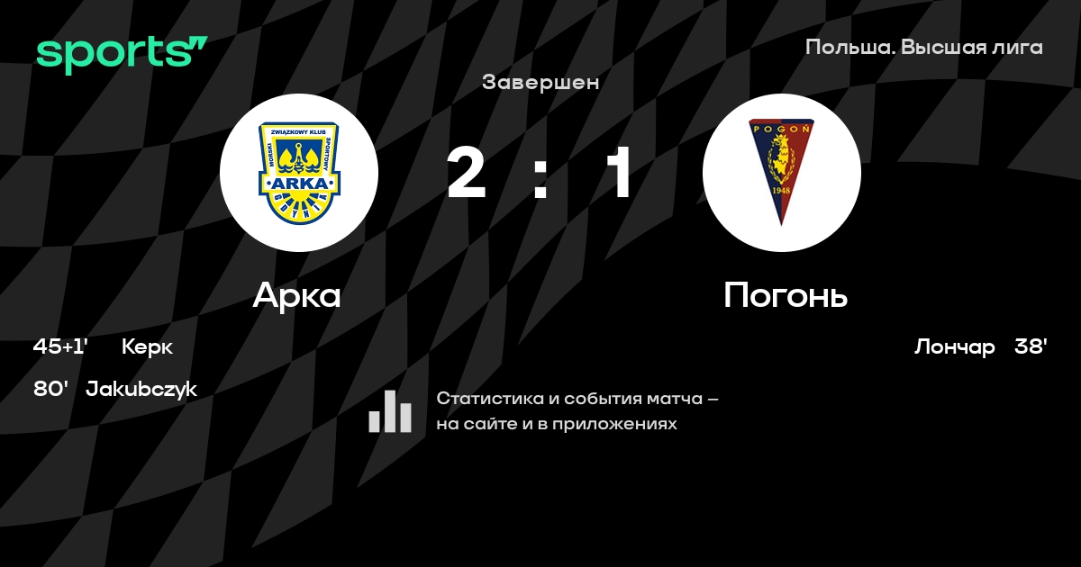 Арка – Погонь: Погонь забивает в 15 из 17 последних матчей против этого соперника